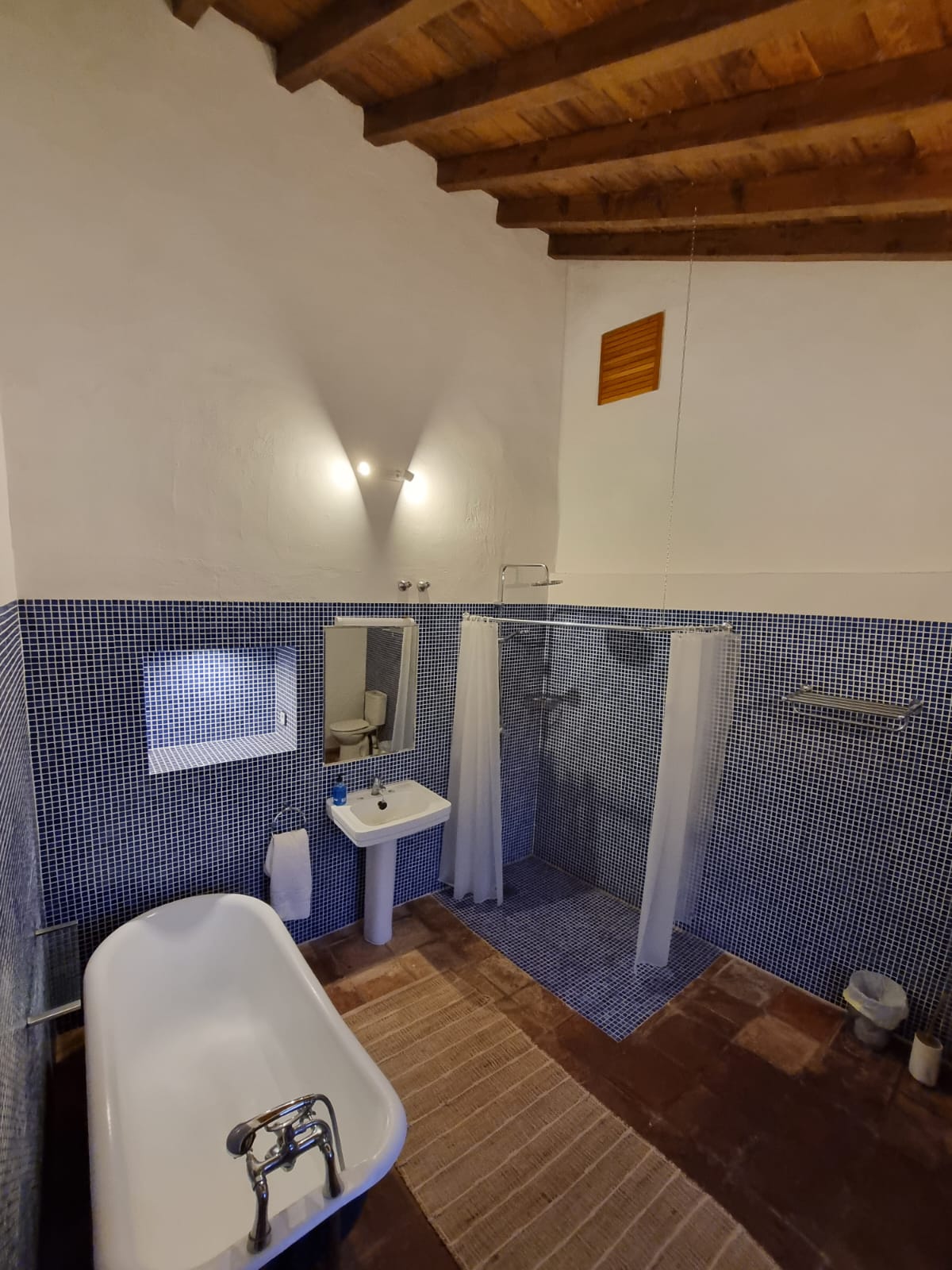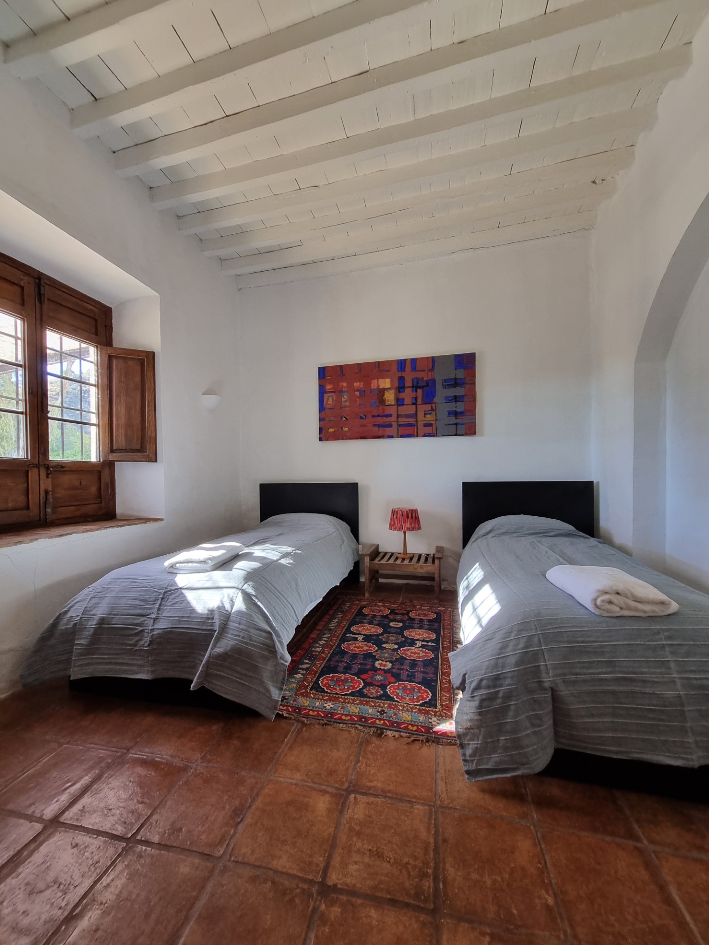 The pool cottage, on the hill behind the house, has two single beds (or an inflatable double), a kitchenette with refrigerator and cooking range, and a bathroom with w.c. and shower room.