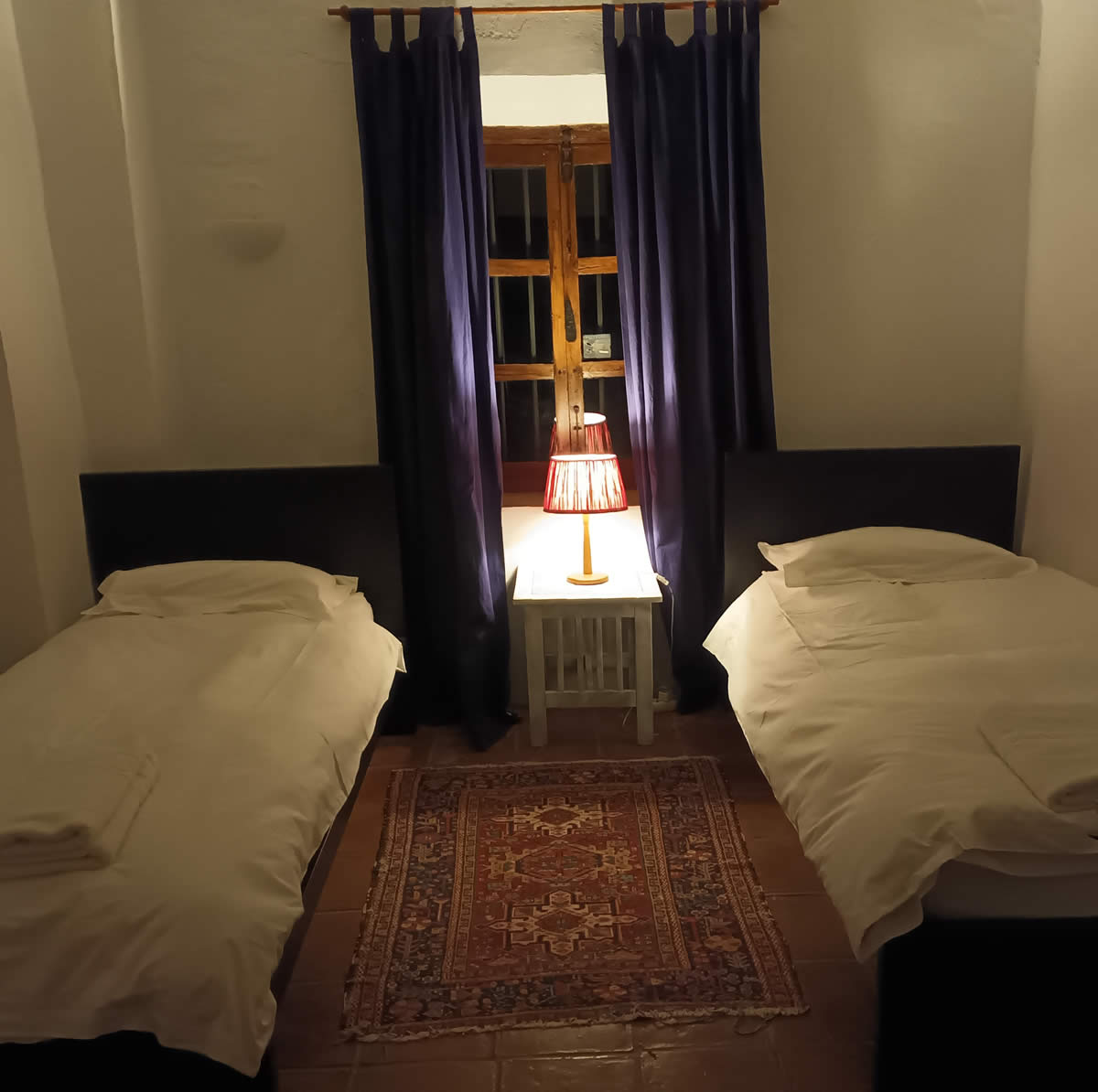 The pool cottage, on the hill behind the house, has two single beds (or an inflatable double), a kitchenette with refrigerator and cooking range, and a bathroom with w.c. and shower room.